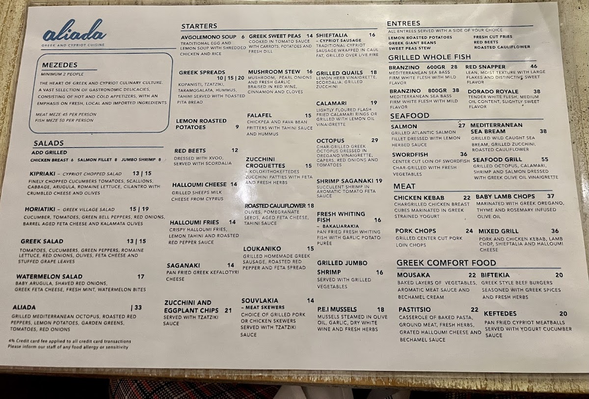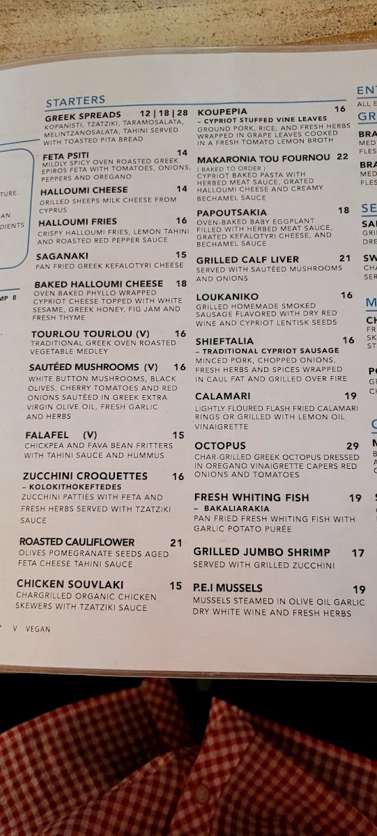 $45 per person - The heart of greek and cypriot culinary culture. a vast selection of gastronomic delicacies, consisting of hot and cold appetizers, with an emphasis on fresh, local and imported ingredients.
